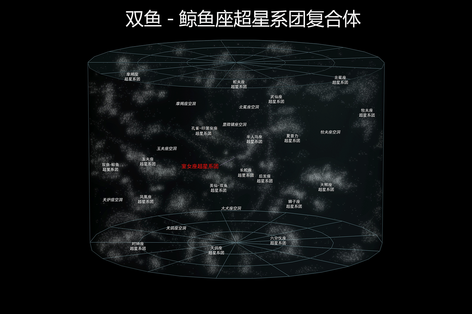 2、双鱼-鲸鱼座超星系团复合体:(直径超过10亿光年)