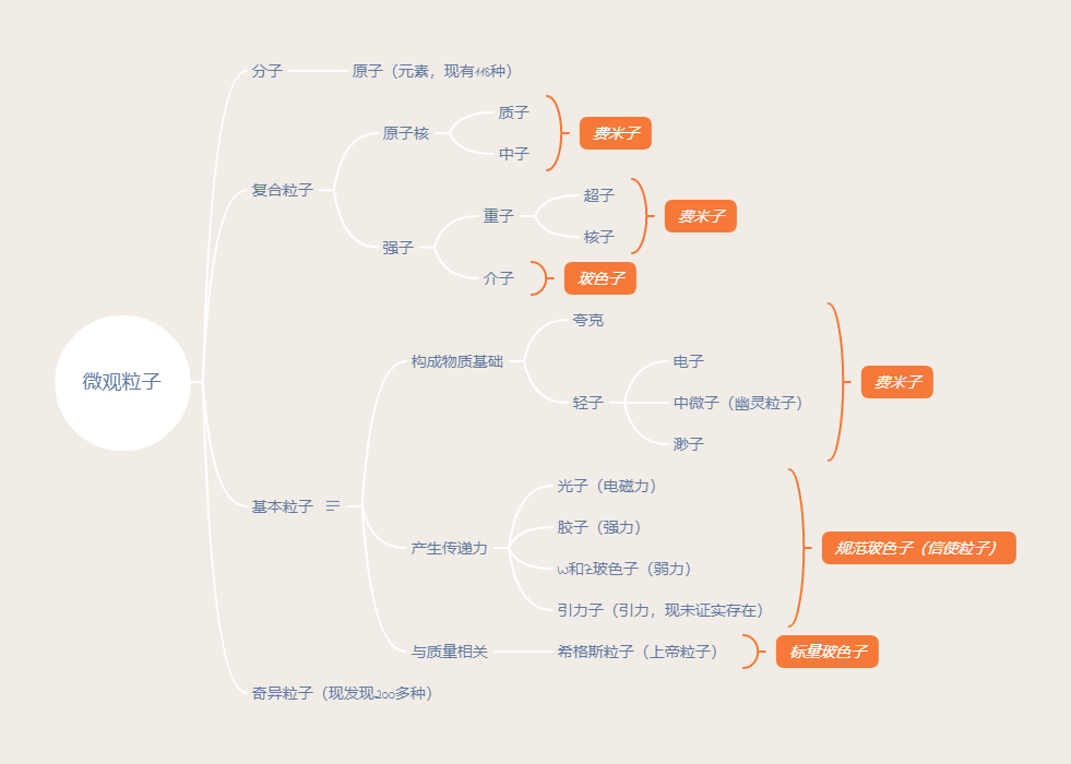 那么,基本粒子主要由三大类构成——夸克、轻子和部分玻色子(每一类又有多种)。其中,夸克和轻子又称费米子——其构成了物质最开始可被观测的结构。