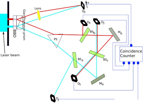 图片来自维基百科(Delayed-choice quantum eraser:The experiment of Kim et al)