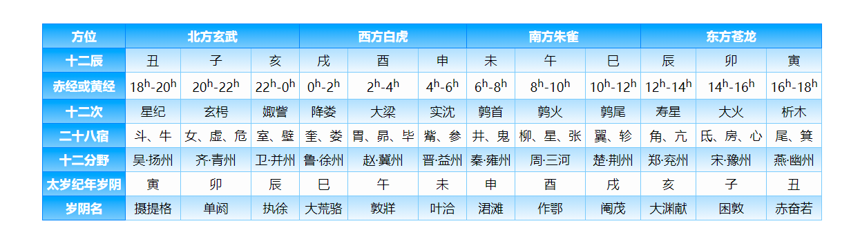 • 十二辰、十二次、二十八宿、十二分野和太岁纪年